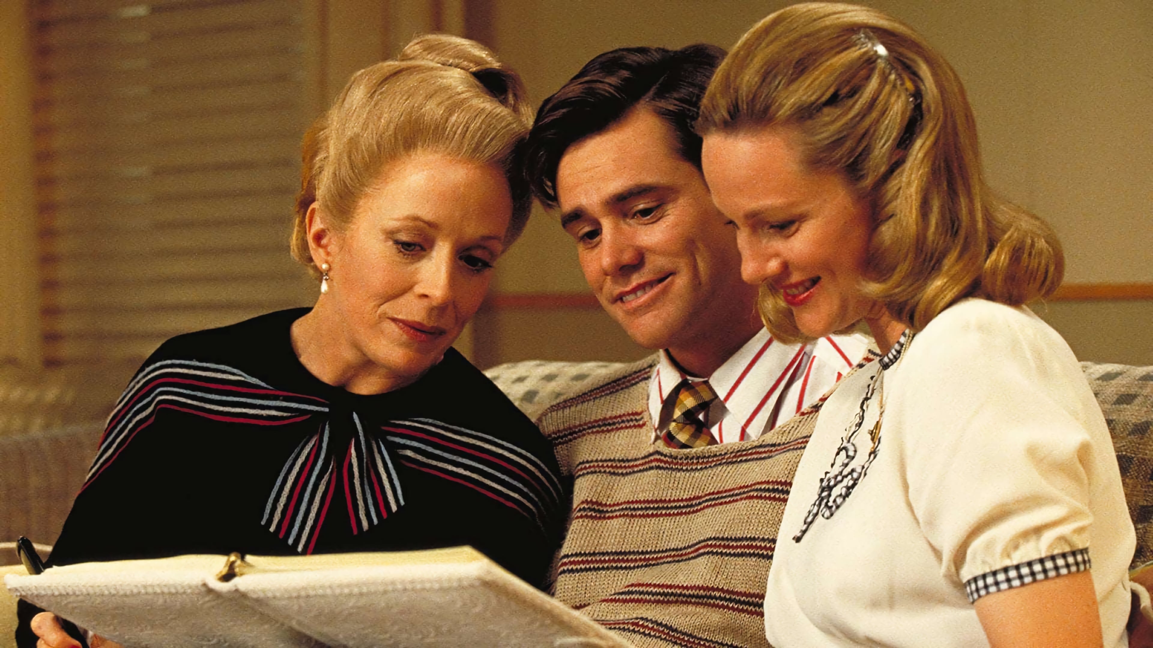 Jim Carrey (Truman Burbank), Laura Linney (Meryl Burbank / Hannah Gill), Noah Emmerich (Marlon / Louis Coltrane), Natascha McElhone (Lauren / Sylvia Garland), Ed Harris (Christof), Holland Taylor (Alanis Montclair / Angela Burbank), Paul Giamatti (Simeon), Brian Delate (Walter Moore / Kirk Burbank), Peter Krause (Laurence)
